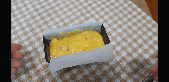 종이호일을 깔고 반죽을 넣어준다. 가볍게 먹기엔 파운드팬 사이즈가 적당해서 좋다. 180도에서 45분을 굽는데 나는 반용량이라 40분 맞춰놓고 30분전후로 완성. 오븐의 상태에 따라 구워주면 될것 같다.