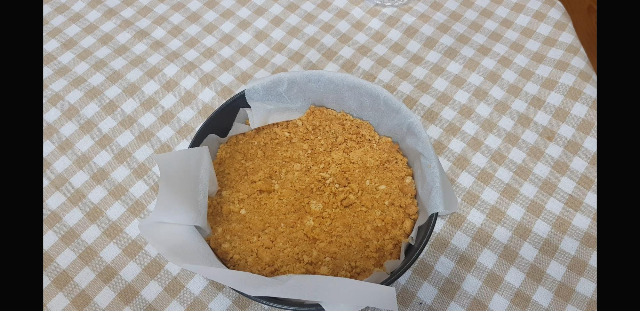 치즈케이크의 밑바닥작업. 다이제스티브를 60g넣어준다(난70g넣었음ㅋ) 참고로 다이소에있는 다이제를 사용했다.
