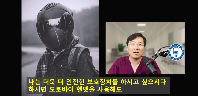 오토바이 헬멧은 완벽한 차단이 된다고 함... 특히나 플라스틱 부분을 락스로 소독하면 됨. 약수터 갈때 쓰는 투명썬캡에 마스크도 추천하심.