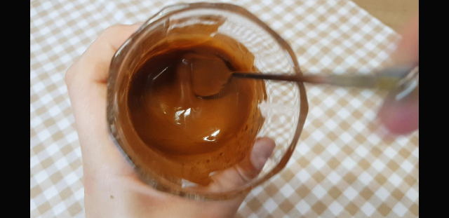 이번엔 몇회 저었는지 세기는 힘드니까 동영상으로 시간을 확인하기로 함. 원래 수타 달고나는 나무스푼으로 하면 빨리된다 하던데 나만없어 나무스푼... 그냥 티스푼으로 도전해봄. 흑설탕과 커피가 합체되서 춘장을 연상시키는 다크한 베이스로 시작해서 3분이 지나고 4분이 지났는데 생각만큼 빠른 변화가 없길래 약간 실망...인걸..? 그래도 시간한번 재보자.