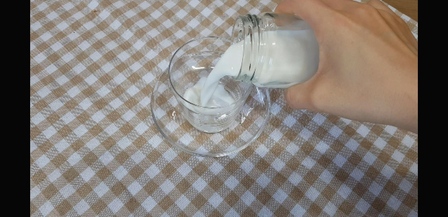 생각보다 너무 빠른 진행에 놀라 바로 잔에다가 우유를 넣어주고.