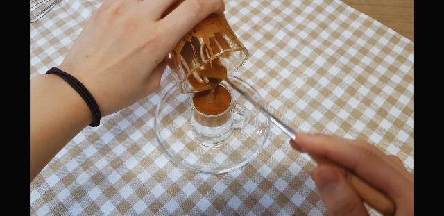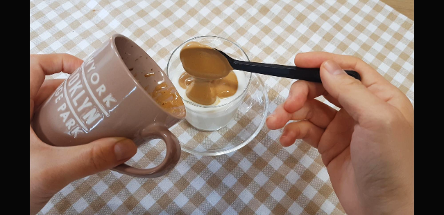 그래서 너무 순식간에 달고나 커피가 완성되는 기쁨에 텐션업되서 바로 수타 달고나 도전 들어가봄.