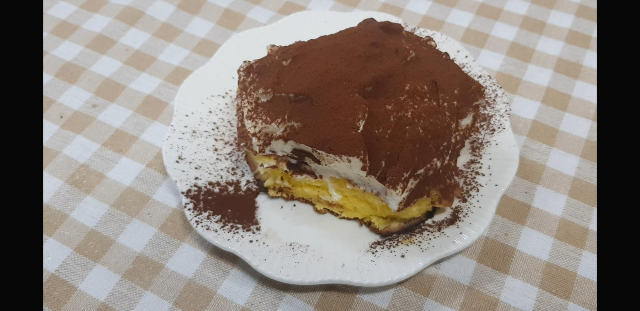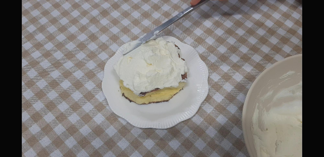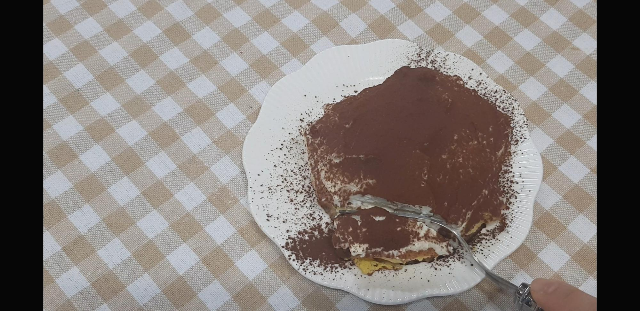다음으로 가장 먼저 만들어 두었던 티라미수용 크림?을 올려준다.썩예쁘진 않아도 카카오파우더 올리면 거기서 거기임..ㅋㅋㅋ