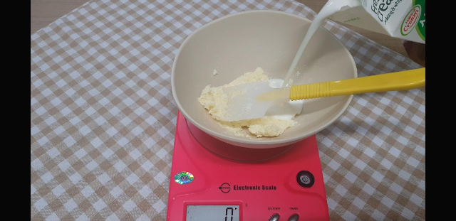 우선 노른자부터 작업해 주는데 우유30g을 넣어준 다음